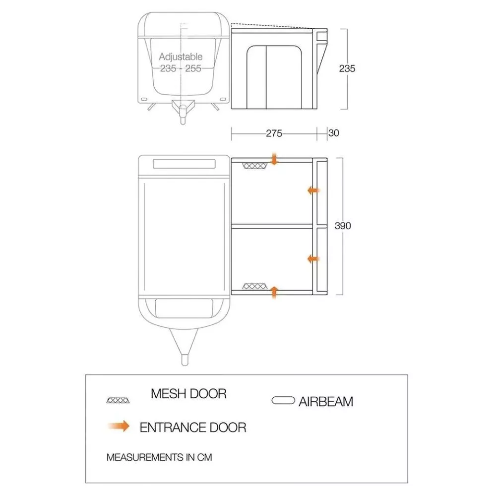 Vorzelt: 390 x 275 cm (BxT)