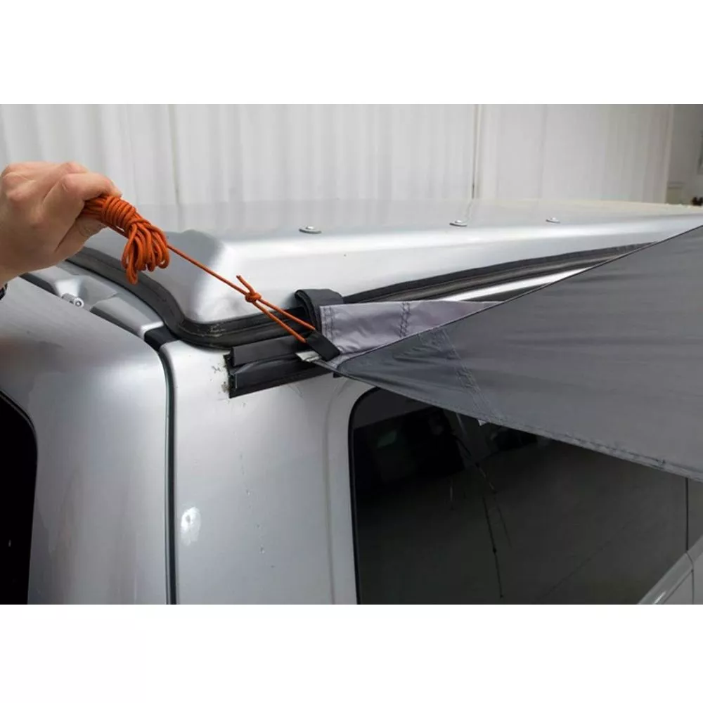 Das Easy Camp Flex Canopy lässt sich schnell und einfach am Campingfahrzeug befestigen und bietet zuverlässigen Schutz vor Sonne und Regen.