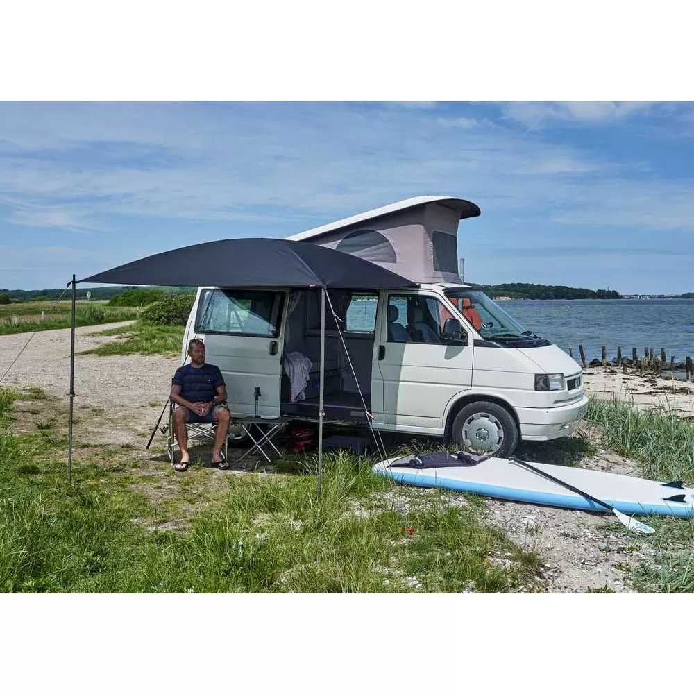 Dieses Isabella Sonnendach wurde speziell für Campingbusse und Vans wie z.B. der VW California, und andere Fahrzeuge gleichen Typs konzipiert. Es ist passend für alle Fahrzeuge mit einer maximalen Höhe von 196 cm und sogar für einen Eriba Touring Wohnwagen.