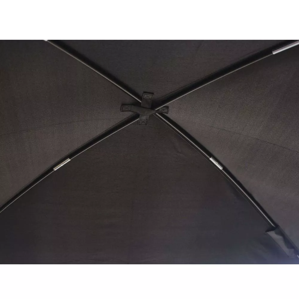 Mit gerade einmal 5,1 kg Gesamtgewicht ist es nicht nur extrem leicht, es lässt sich zudem auch sehr schnell aufbauen. Zwei Glasfiberstäbe die überkreuz laufen geben dem Dach eine gute Spannung und sorgen für eine angenehme Höhe. Die zwei vorderen Aufstellstangen aus robustem CarbonX lassen sich teleskopieren und sorgen für den nötigen Stand.