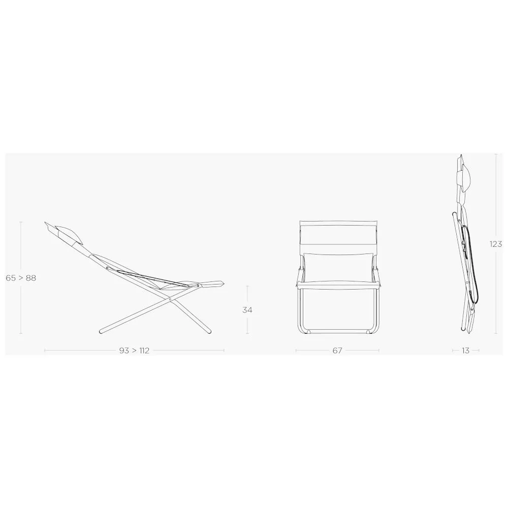 Er lässt sich in 3 verschiedenen Positionen verstellen, inklusive der Liegefunktion zum „Sonnenbaden“. Festgestellt wird die Position mit einem widerstandsfähigen Karabinerhakensystem. Die Armlehnen aus verstärktem Gewebe und die Bodenschoner sorgen für zusätzlichen Komfort. Der Lafuma Transabed hat zudem ein verstellbares und abnehmbares Kopfpolster und braucht wenig Platz im geklappten Zustand. Der Bezug ist ebenfalls abnehmbar.