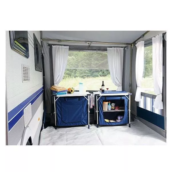 Waagerechte Hohlsäume (ca. 60 cm) mit Klettverschluss stehen zur Aufnahme von optionalen Zusatzstangen bereit und tragen zur Stabilität der Vorder- und Seitenwände bei. - Senkrechte Hohlsäume: