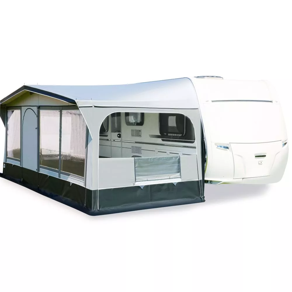 Das schlichte Caravan-Vorzelt bietet alles, was für den Alltag auf dem Campingplatz benötigt wird. Flexible Aufbaumöglichkeiten lassen einen wundervollen Campingurlaub bei jedem Wetter zu. Fünf Zeltteile bestehend aus dem Dach, zwei Vorder- und zwei Seitenwandelementen, sowie das 32 mm Stahlgestänge sorgen für leichten Auf- und Abbauen.